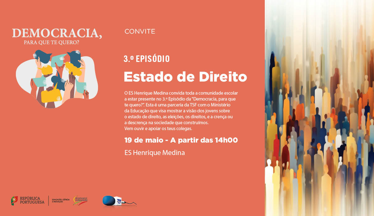 No passado dia 13 de janeiro, esteve presente, na Escola Secundária Henrique Medina, o deputado da Assembleia da República Firmino Marques, para uma sessão com os alunos participantes no Projeto “Parlamento dos Jovens”, subordinada ao tema “Violência Doméstica e no namoro: da sensibilização à ação!”. A sessão contou com a presença dos alunos das cinco listas concorrentes às eleições do Parlamento dos Jovens, que integram as turmas A e B do 8º ano e A, B, C e D do 9º ano, num total de 140 alunos.