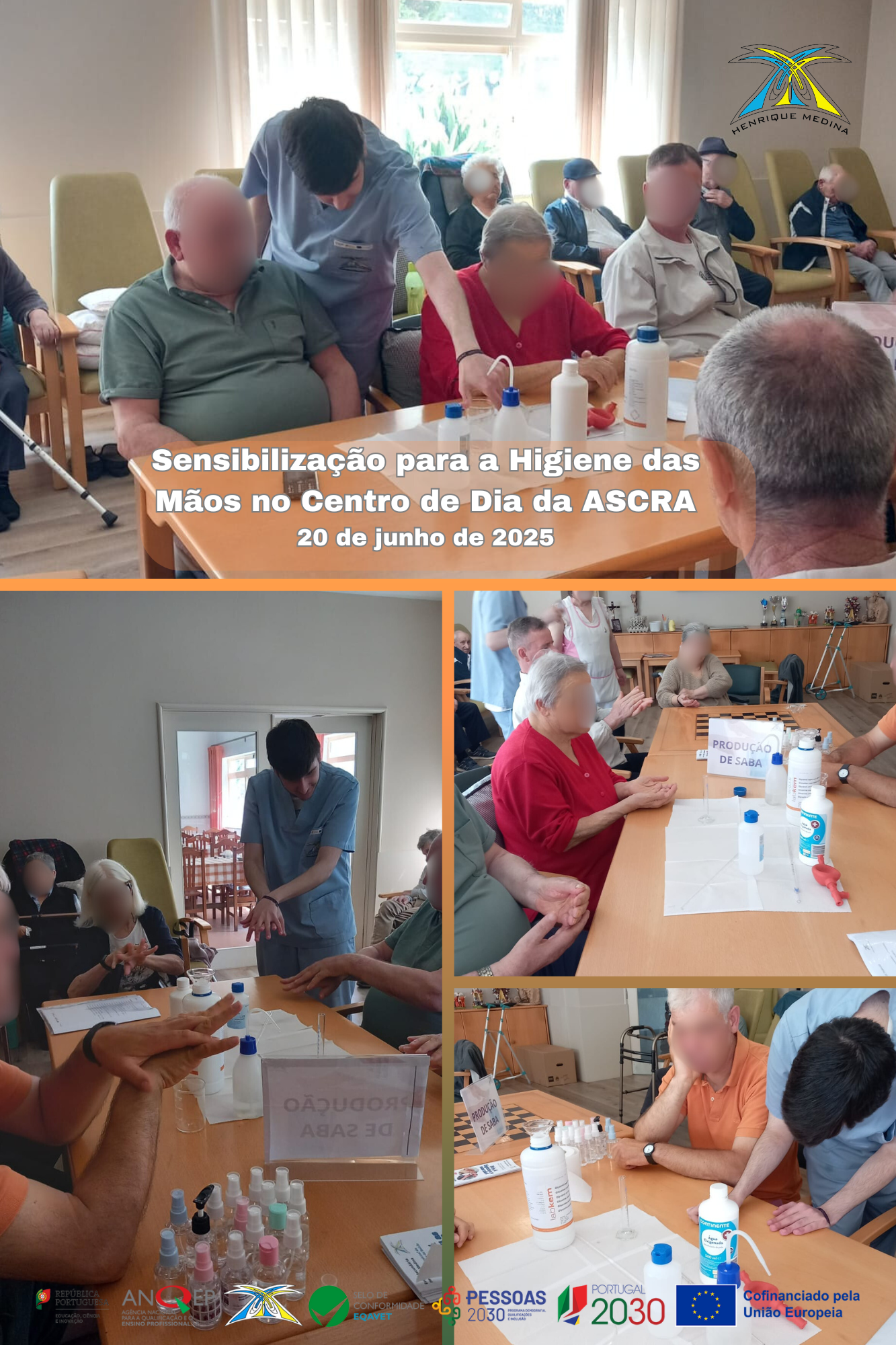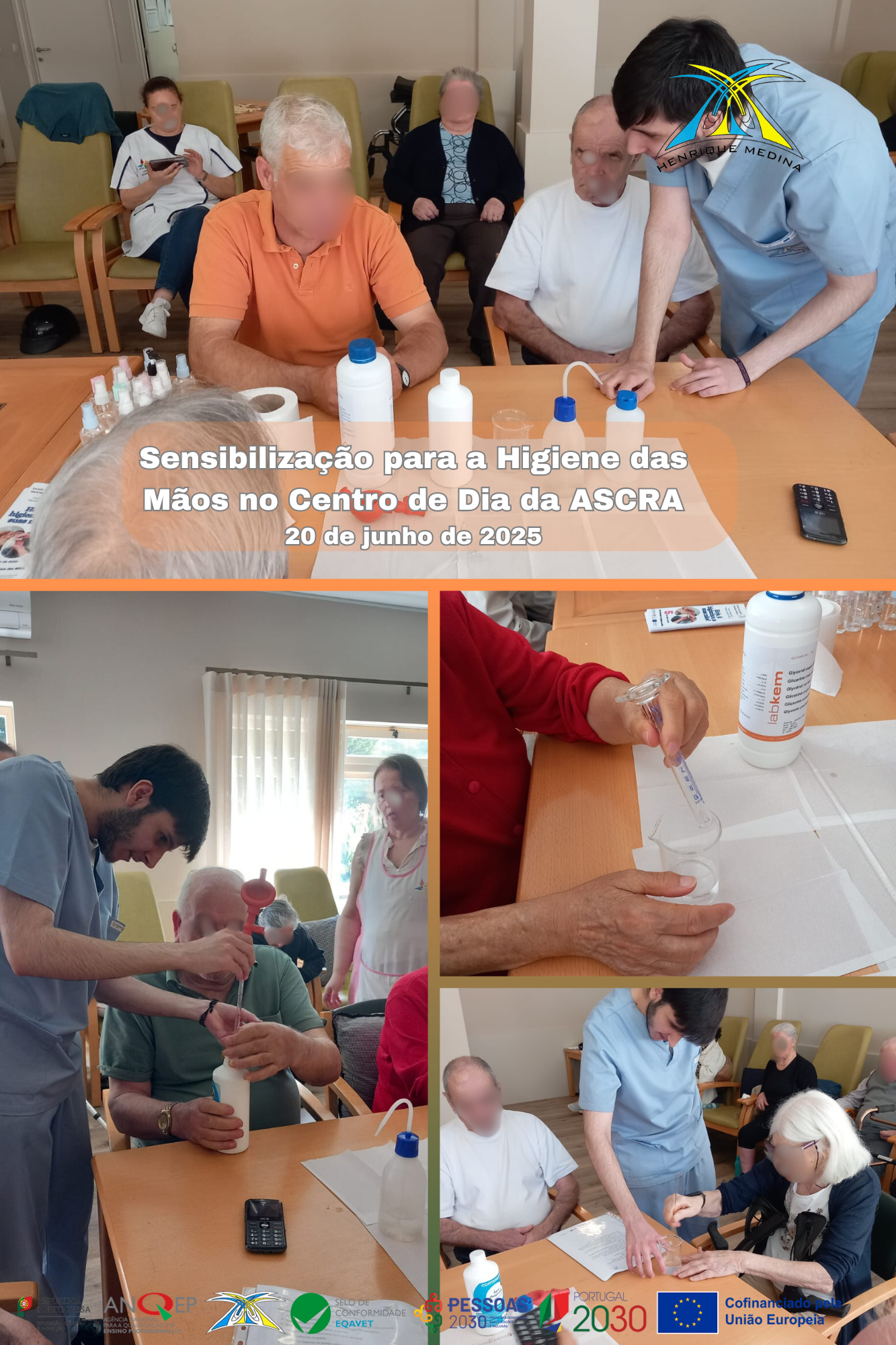 ALUNO DO CURSO PROFISSIONAL TAS PROMOVE SENSIBILIZAÇÃO PARA A HIGIENE DAS MÃOS NO CENTRO DE DIA DA ASCRA